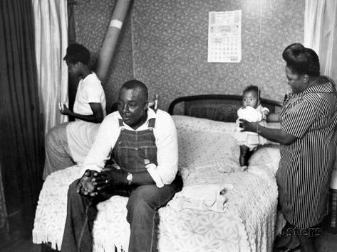 (left to right) Vergie Ree in front of window, Dorothy Jean leaning behind Pap on the bed. And Fannie Lou holding Dorothy’s baby, Lenora (Nook).
