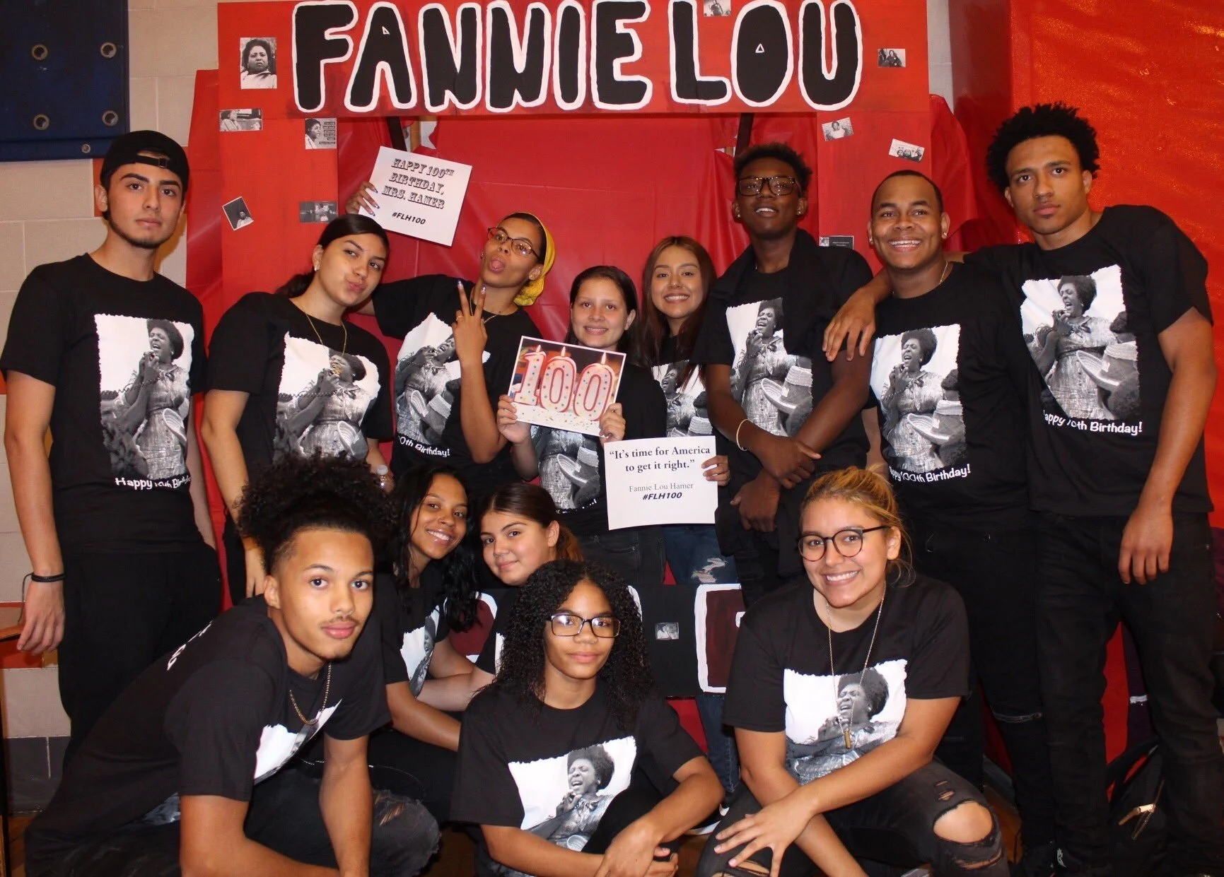 Students proudly wear their centennial T-shirts celebrating Fannie Lou Hamer.