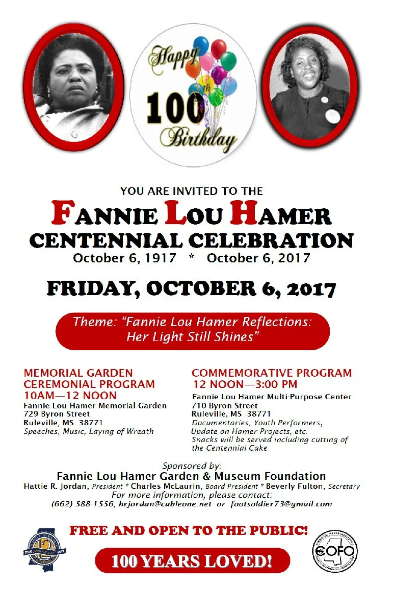 A promotional poster for the celebration in Hamer's hometown of Ruleville, MS. A celebratory program in honor of Hamer's birthday is held annually.