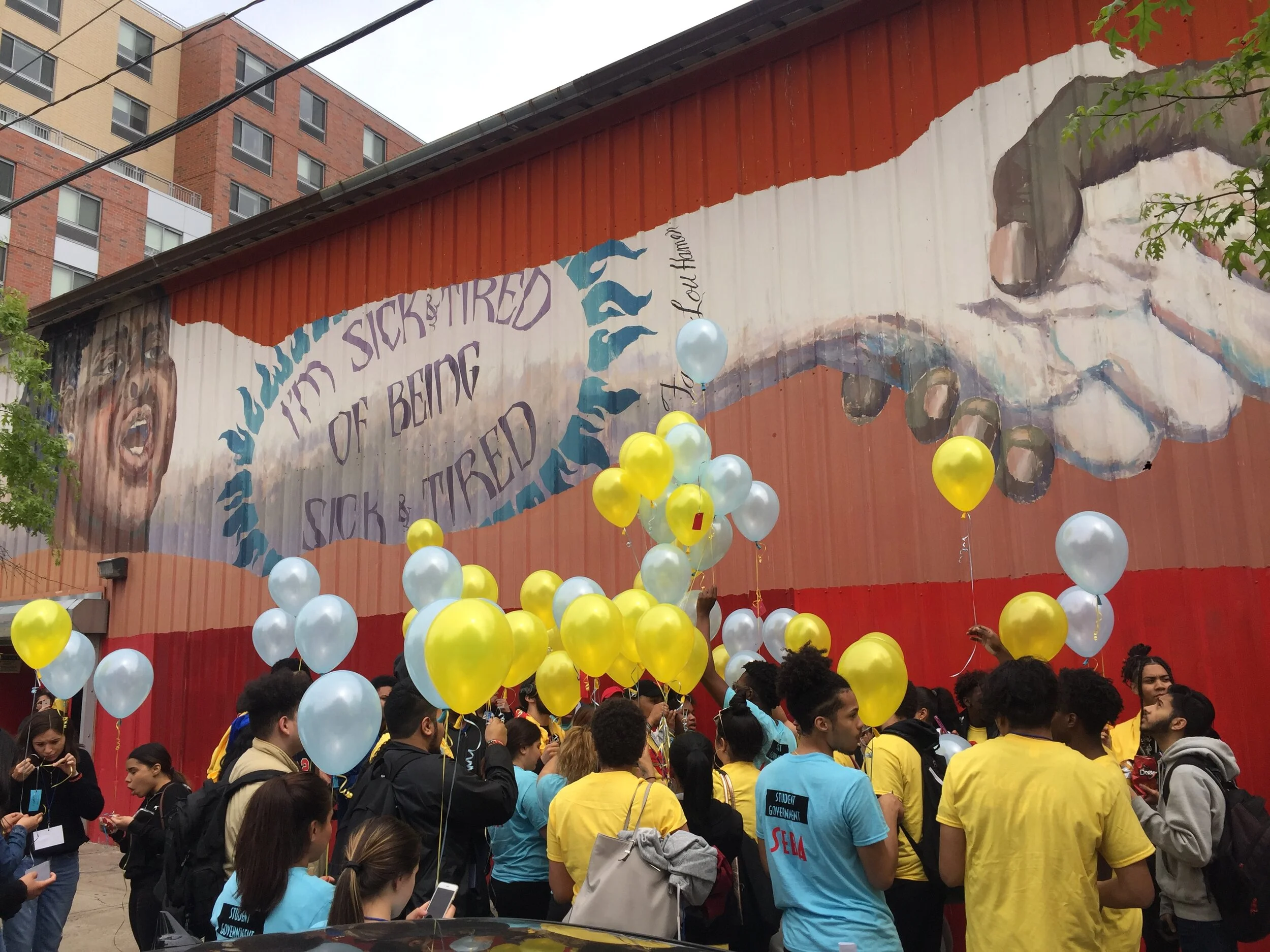 Students celebrate Hamer's centennial birthday outside of the campus.