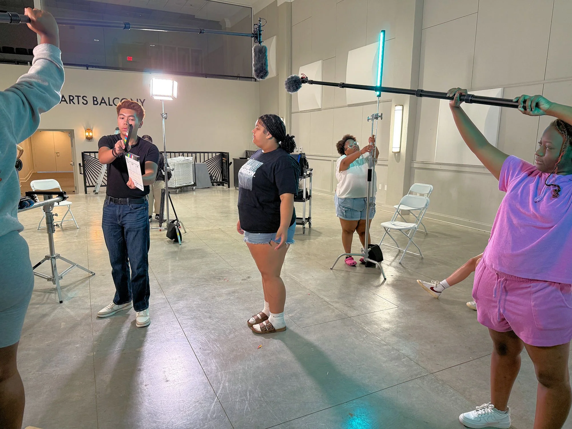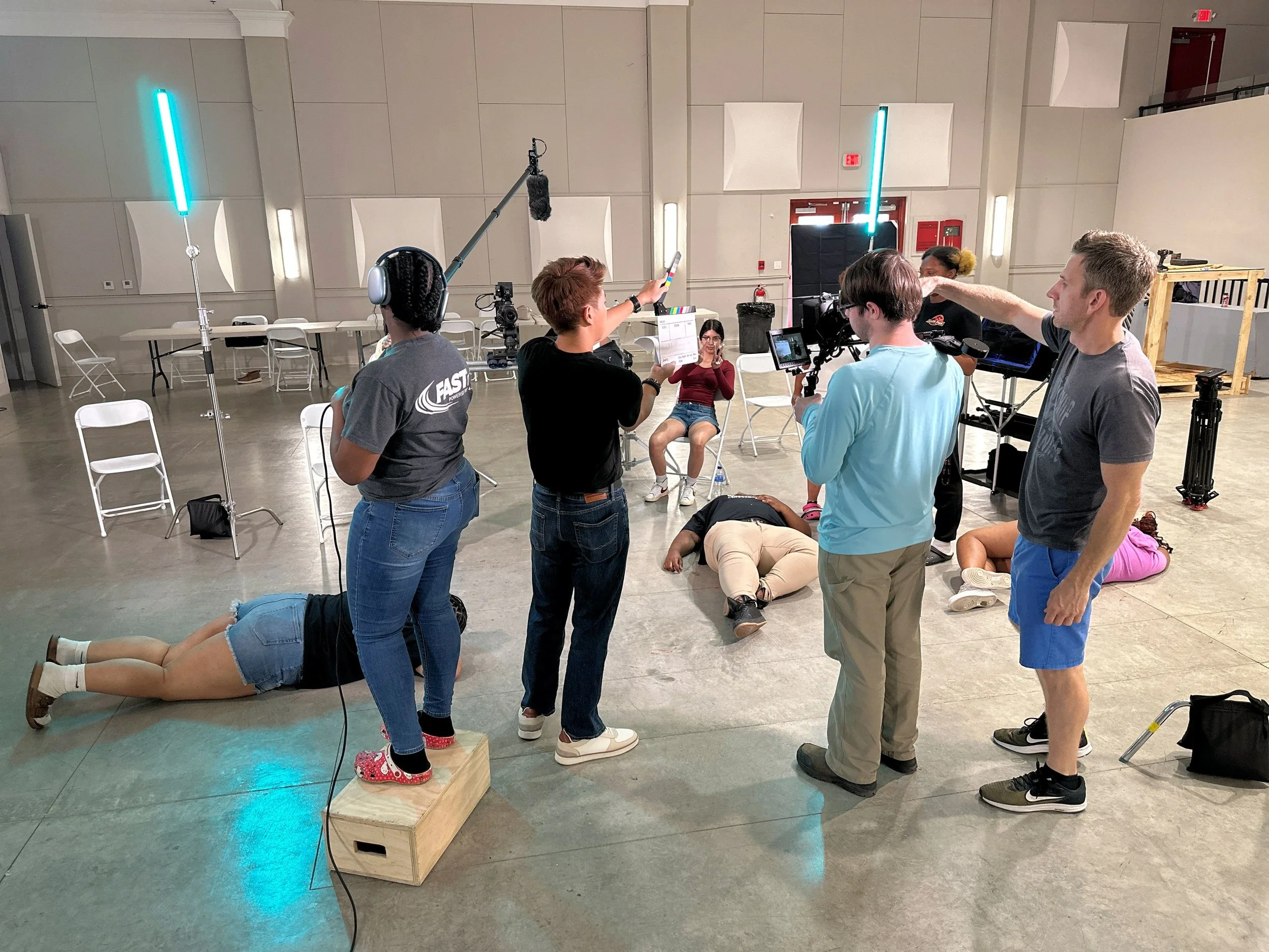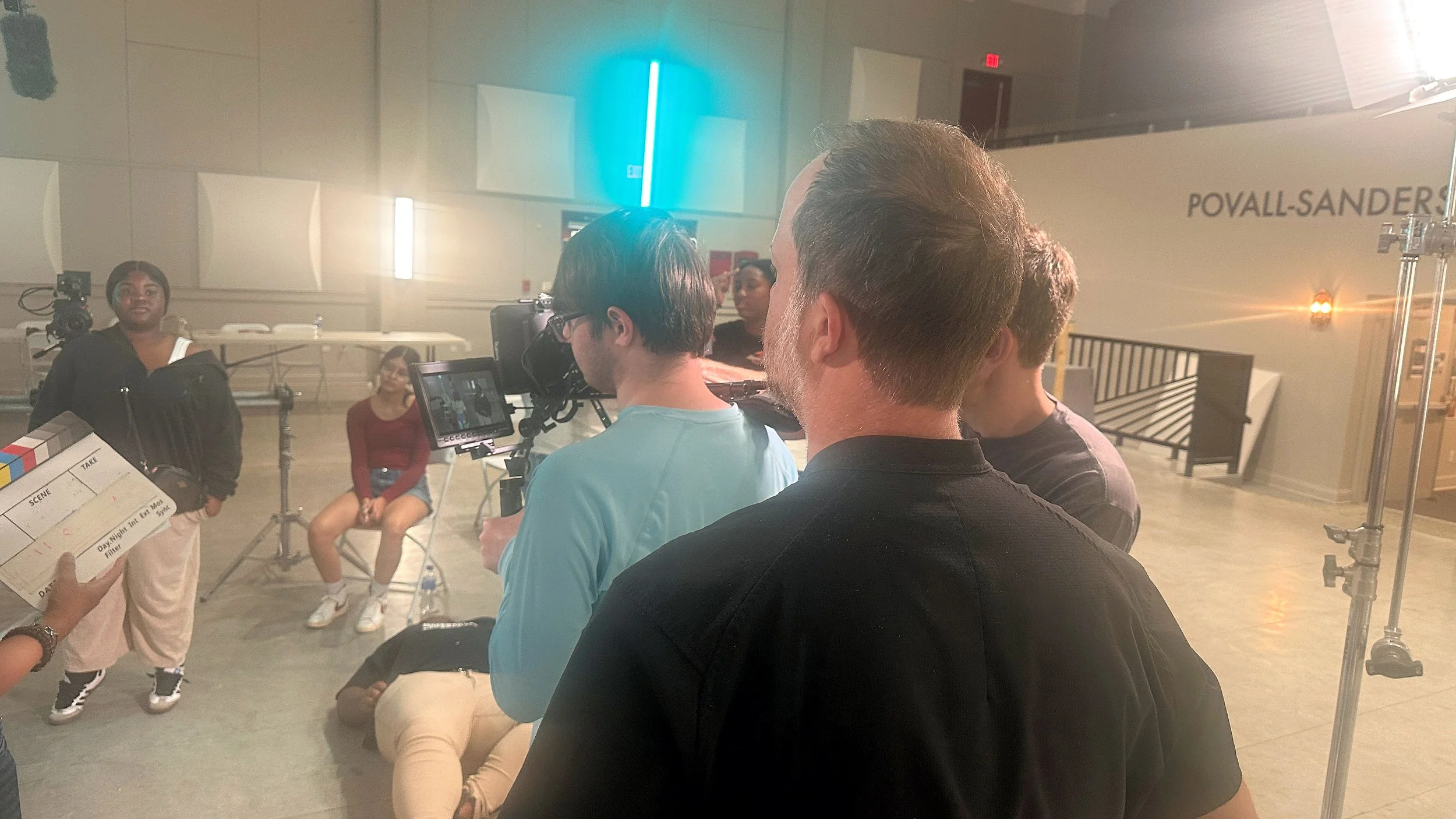 SCFA Instructor Glenn Payne works with the student production crew on set
