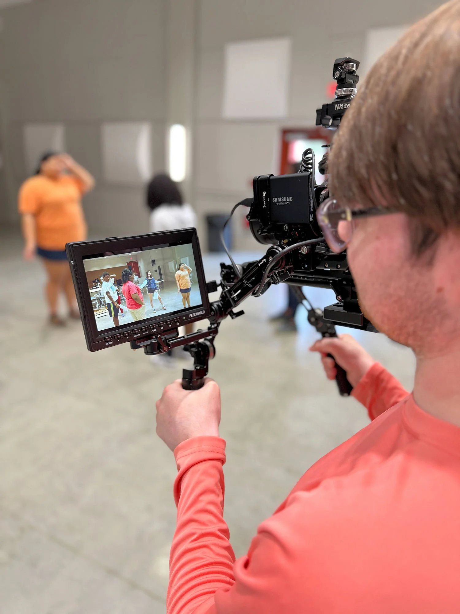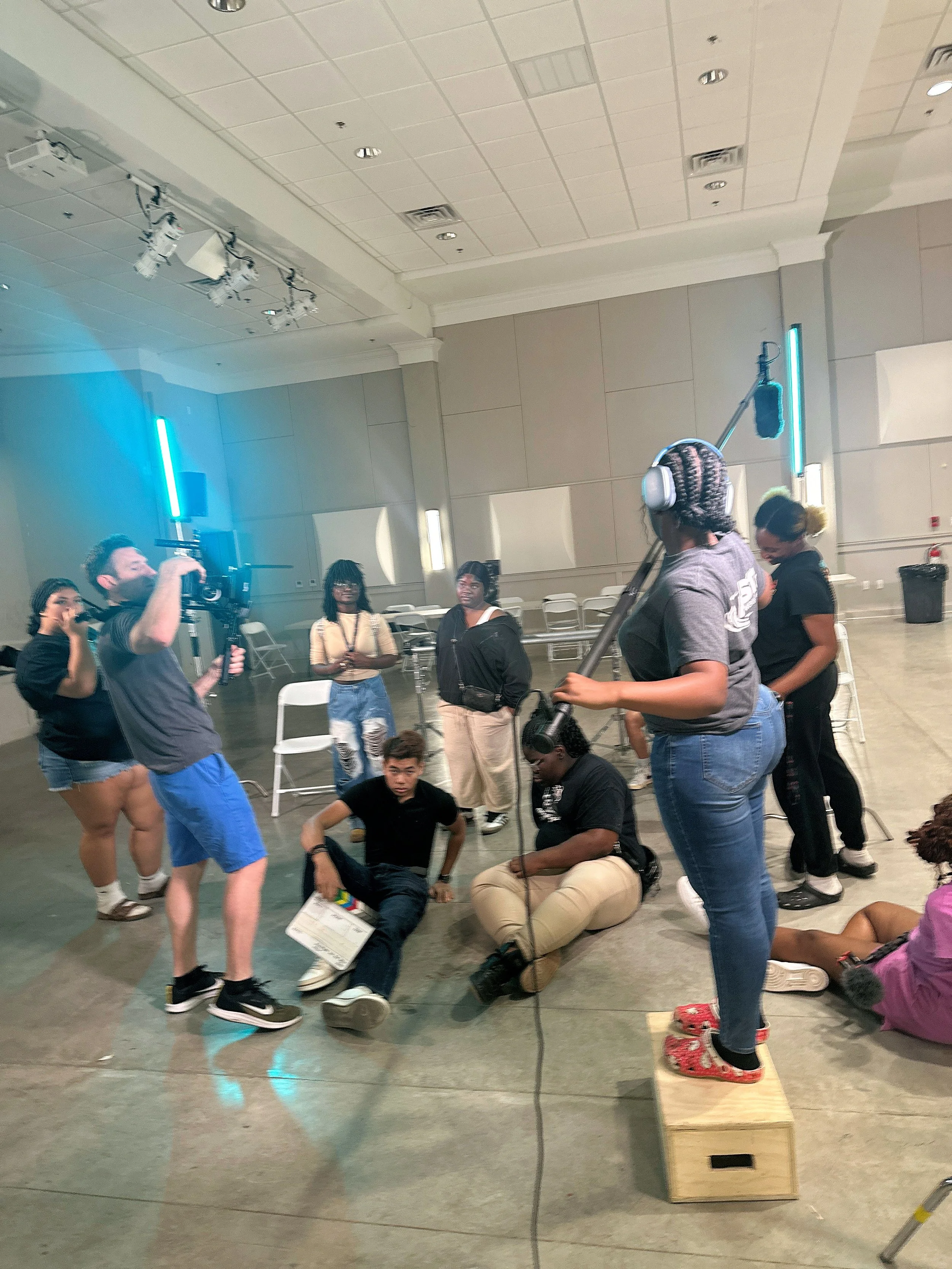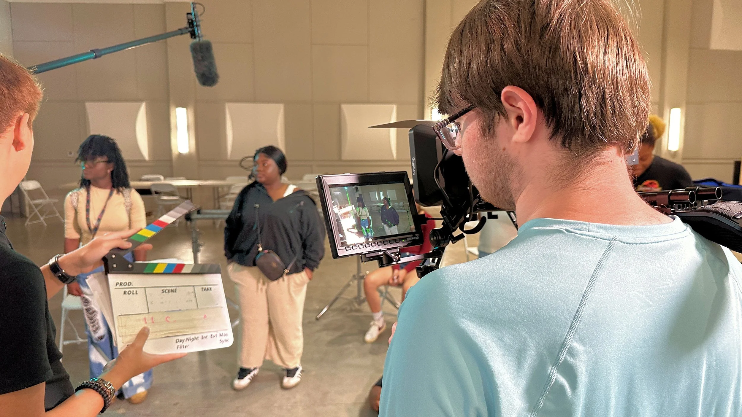 SCFA Instructor Glenn Payne works with the student production crew on set