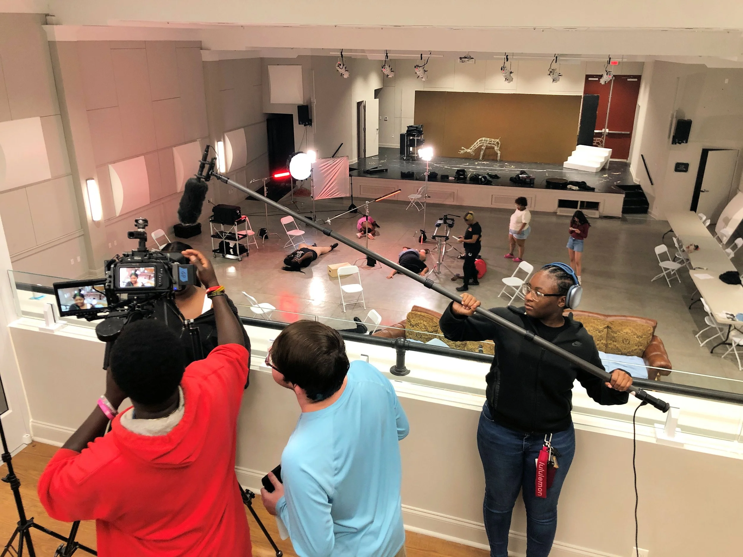 SCFA instructor Glenn Payne works with the production crew Merion Turner, Nick Ales and Madison Dozier